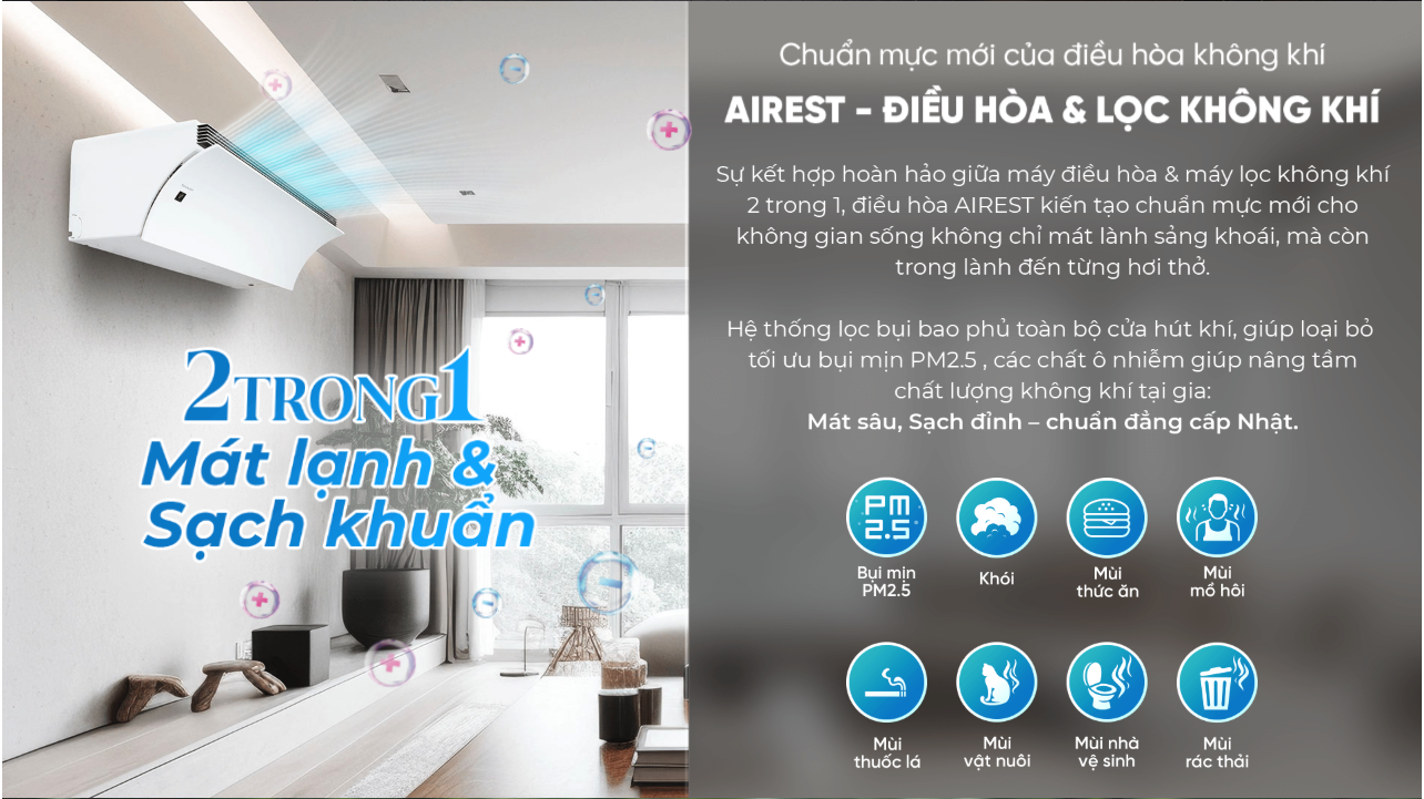 | Product Line | Máy Lạnh Cao Cấp AIREST 2 Trong 1 Điều hòa & Lọc khí |