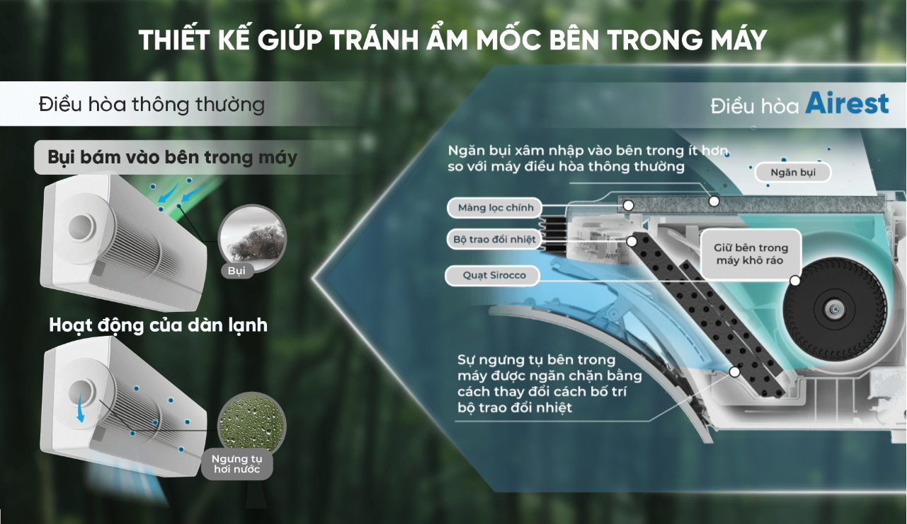 - Cấu trúc dàn lạnh chống ẩm mốc
