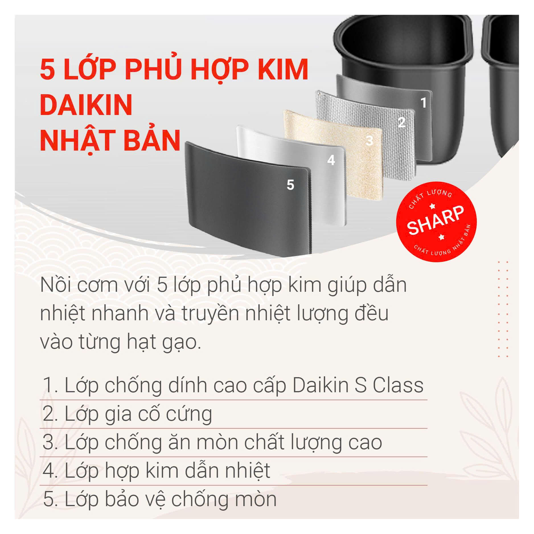 - 5 lớp phủ hợp kim Daikin Nhật Bản